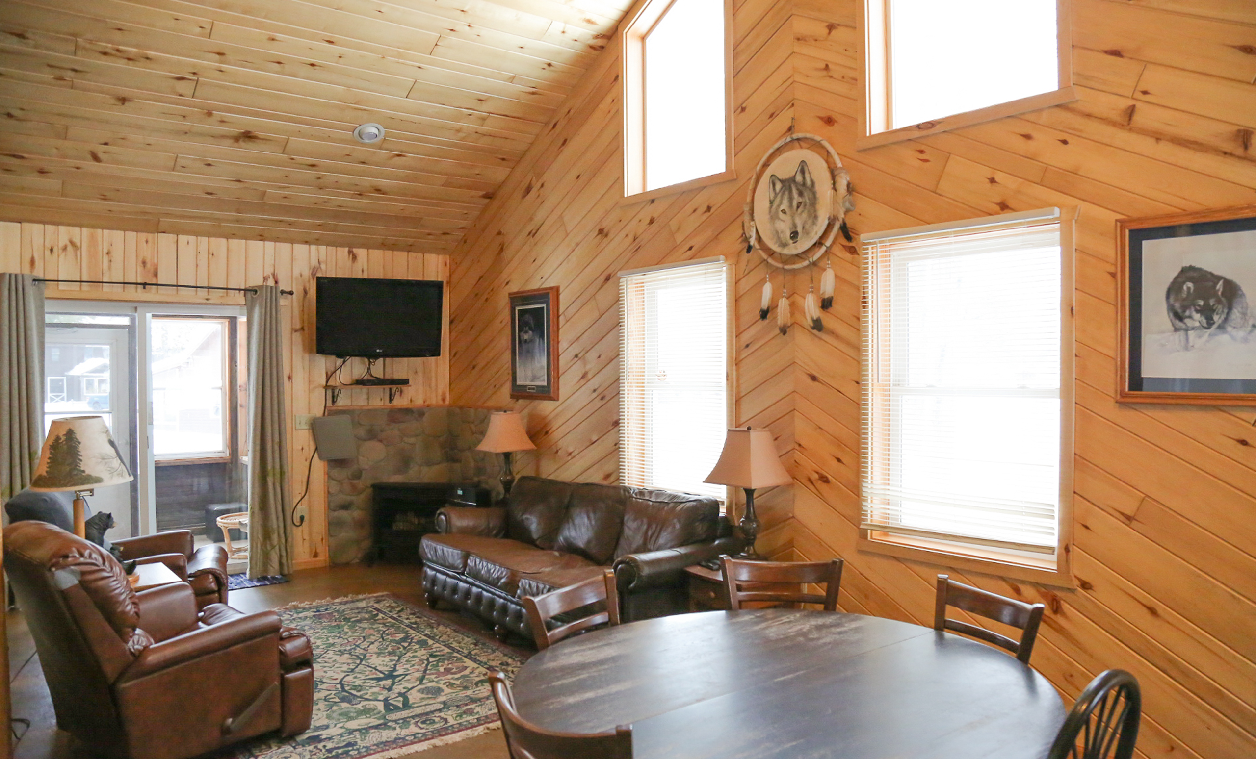 Wolf’s Den is a four-season cabin and is available to rent year-round.